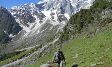 The elegant Deo Tibba 6001m. is located east of Manali, above Jagat Sukh village. The Southeast ridge is clearly visible from while crossing of Hamta...