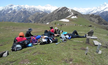 Patalsu peak (4240m) (13,910 ft) is located at the North end of Manali, East of Solang valley, and West of Rohtang La in Himachal Pradesh. The peak is easy to approach from Solang throughout the year. During summer by hike and during winter by ski touring. The slopes of Patalsu remain snow-covered during the month of April, May, and June. Mid-July to Mid Sept is not recommendable during monsoon. Mid Sept to Oct end is another good time to reach the top of this peak. January, February, and March are good for Ski touring. This trip is 3 days 2 nights, making it a comfortable hike in Solang valley. The trek starts from Solang and passing through Apple orchards and deodar forest to higher up at Shaga dugh base camp. The spectacular and panoramic view of Solang valley and Beas River valley to the south can be seen from the slopes of Patalsu. To the North towering 6000m peaks of Makar Beh & Shikar Beh and to the SE you will have a view of Indrasan and Deo Tibba. An excellent short trek in Solang valley close to white mountains.
